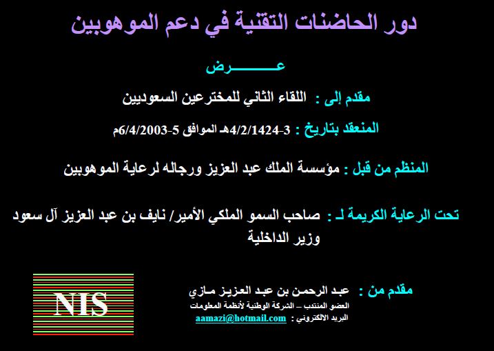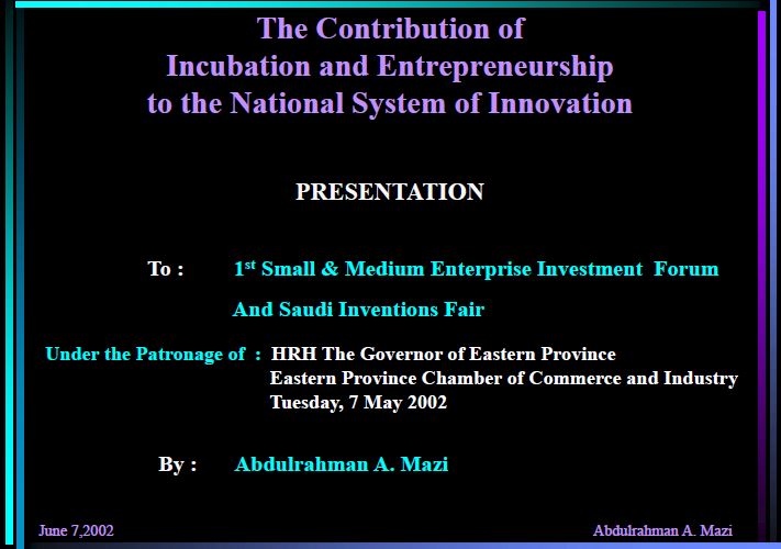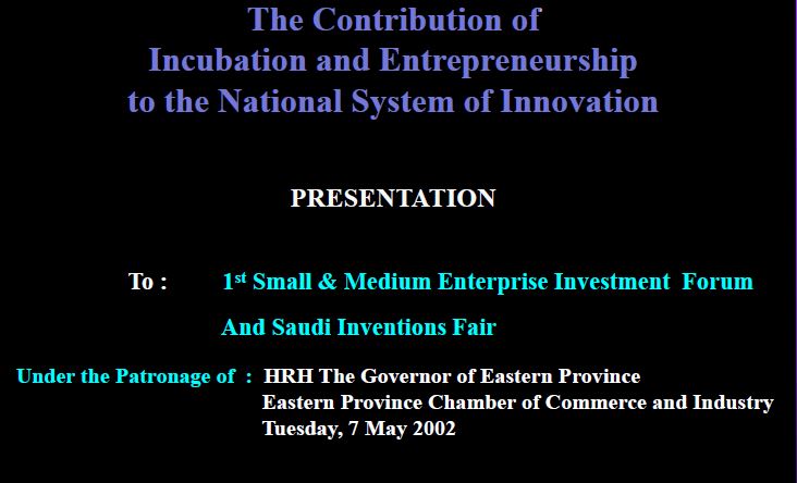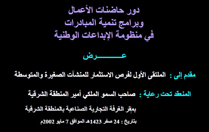 مقالة 2003-03-16 حاضنات الأعمال أداة فعالة للنمو الاقتصادي توفر البيئة اللازمة لرعاية ونجاح المنشآت الصغيرة وأصحابها من رواد الأعمال عرض الملف