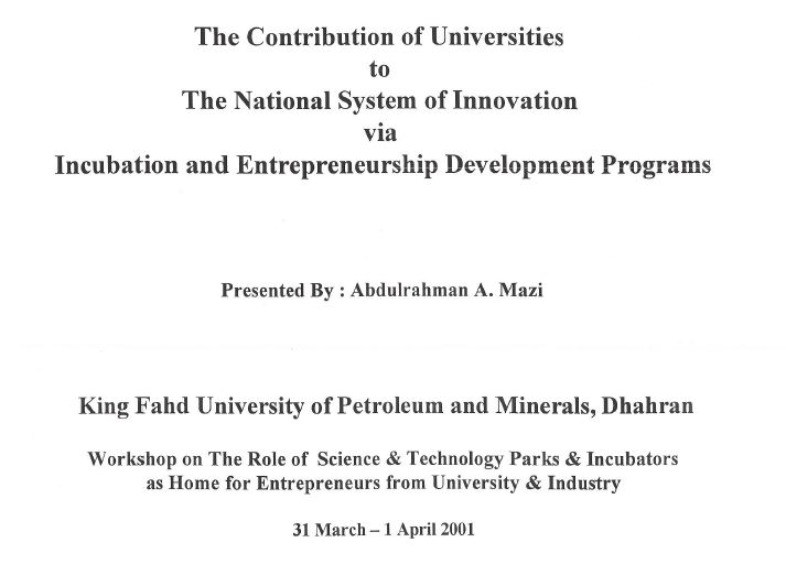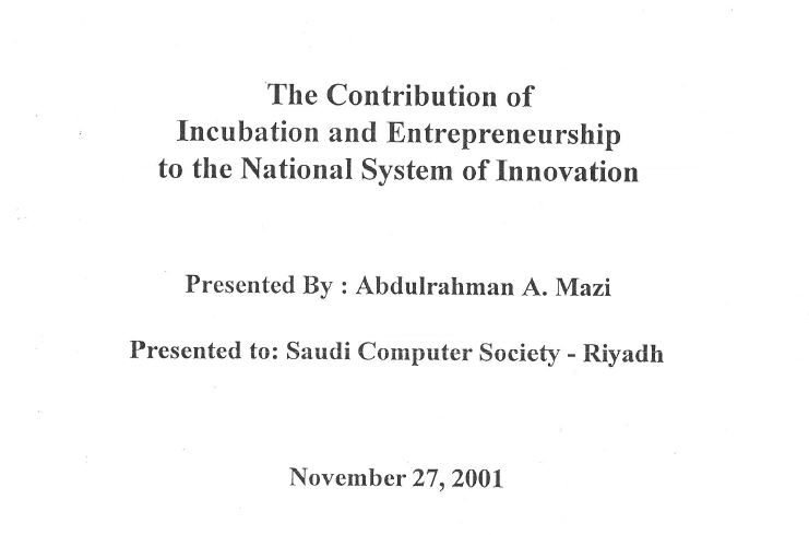 مساهمة الجامعات إلى نظام الابتكار الوطني عبر برامج التنمية الحضانة وريادة الأعمال 2001-03-31 عرض الملف